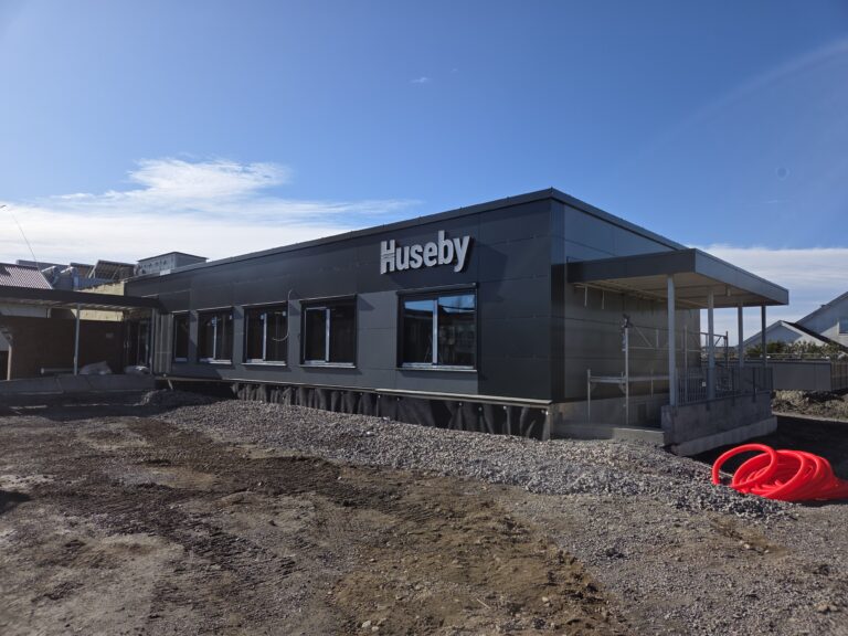 Vi bygger nytt administrasjonsbygg og kantine for Huseby Kjøkken. Ferdigstilles april 2026.